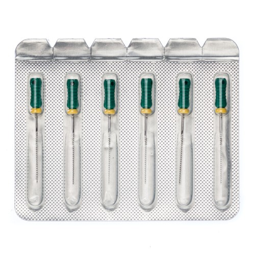 Рабочая часть Н-файлов № 35 Pro-Endo, сделанная из нержавеющей стали, позволяет вводить инструмент в канал и очищать его поступательными движениями. Длина погружения контролируется силиконовым стоппером, пластиковая ручка с противоскользящим покрытием обеспечивает надежное удержание.